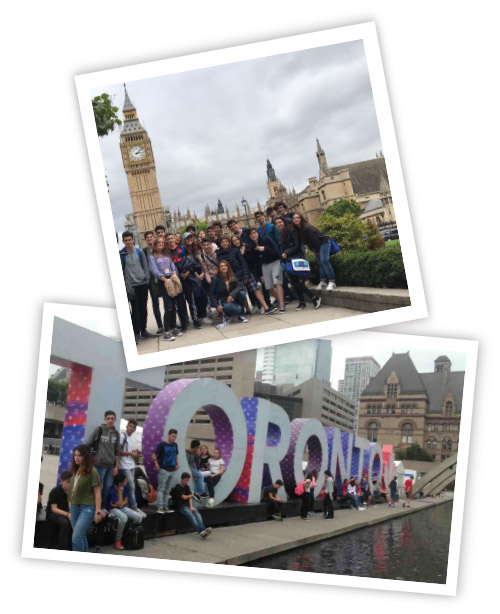 SE llevan a cabo viajes de estudio a Canadá (Toronto), Inglaterra (Londres), Y la experiencia en EEUU de “Global Young Leaders Conference”, donde desarrollan estrategias de liderazgo en simulacros, como embajadores en Naciones Unidas.